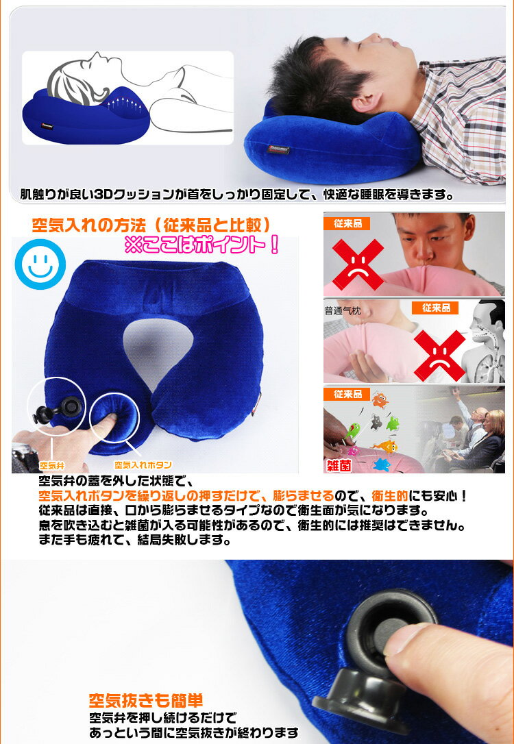 関連キーワード: エアー 枕 携帯枕 ネックピロー ビジネス 出張 機内 車内 昼休み 休憩 安眠 居眠り