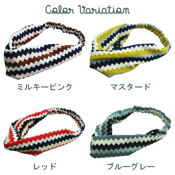 ストライプ柄フロントクロスカチューム☆ヘアアクセサリー ヘアーアクセサリー ヘアバンド ターバン カチューシャ シェブロン ピンク レッド 赤 マスタード イエロー 黄色 グレー レディース プレゼント ギフト メロウストア【メール便配送】